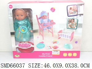 12寸男娃带六声IC带摇床配奶瓶/尿壶/护发素