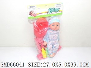 16寸喝水男娃带12声IC+塑料推车配尿壶/尿裤/洗面奶/奶瓶