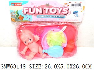 趣味摇头手压喷水浴盆加搪胶小表情娃穿三角裤套装