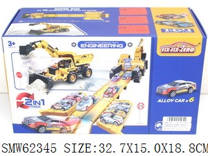 合金变形收纳弹射工程车带灯光音乐配铁皮车6只